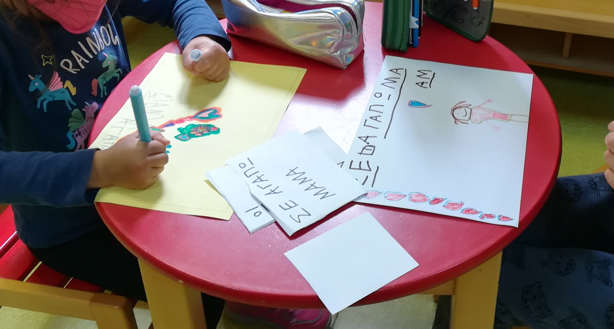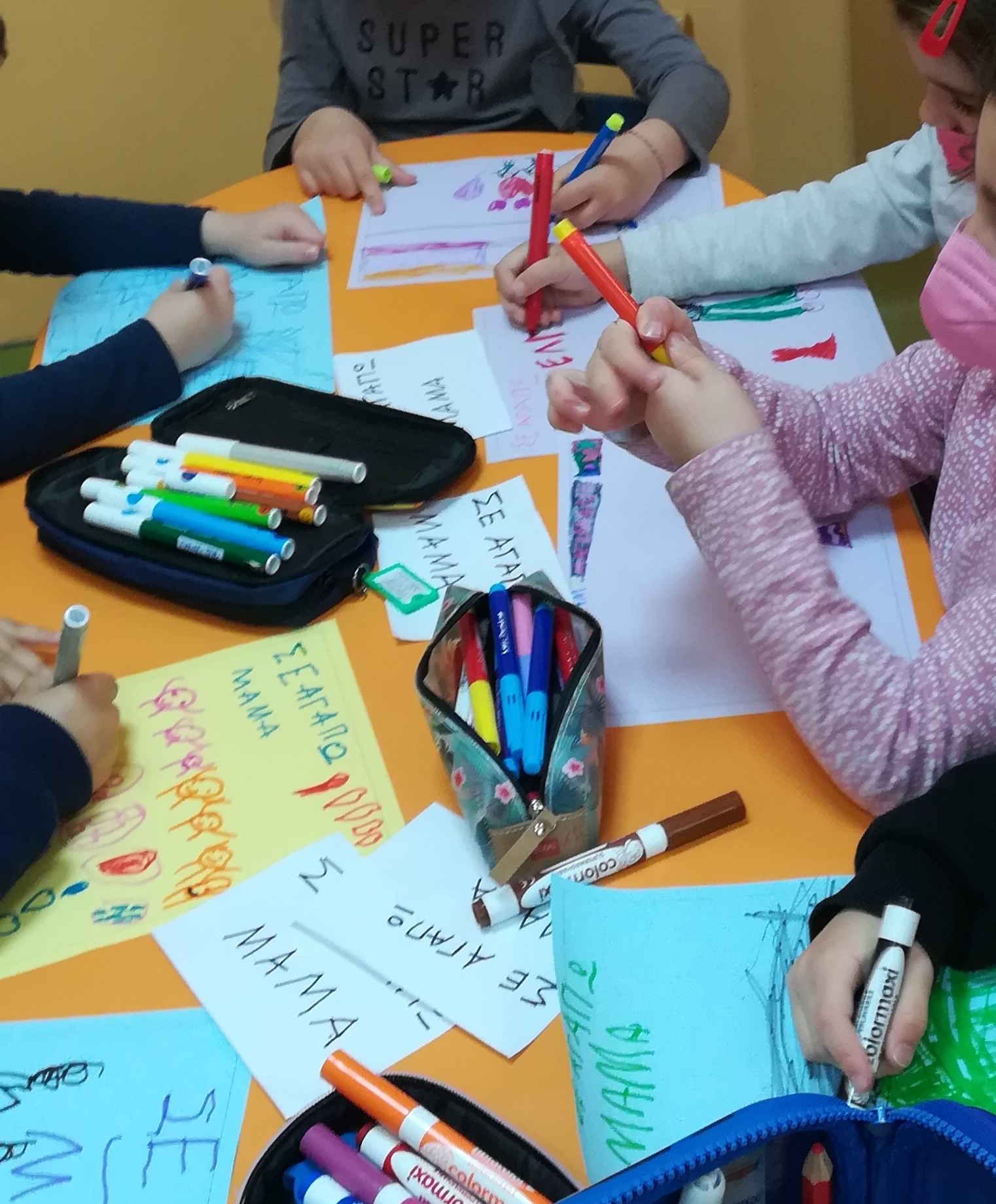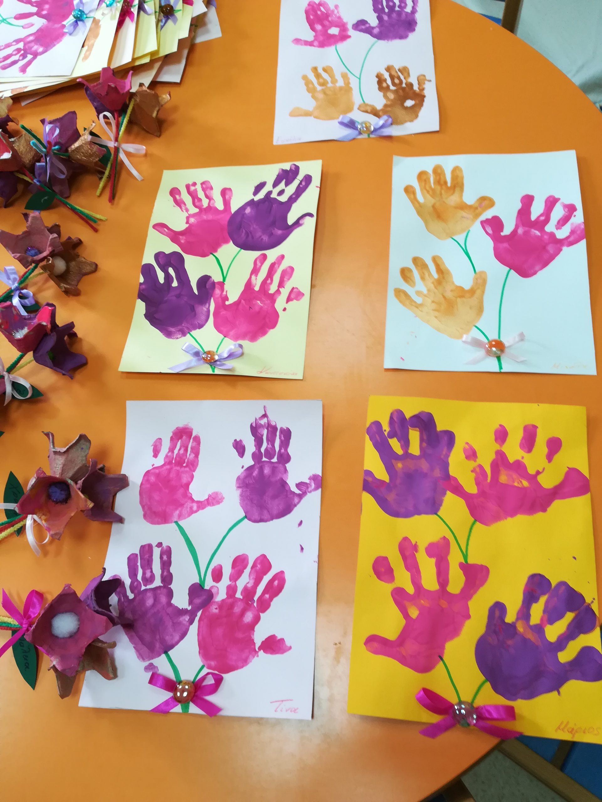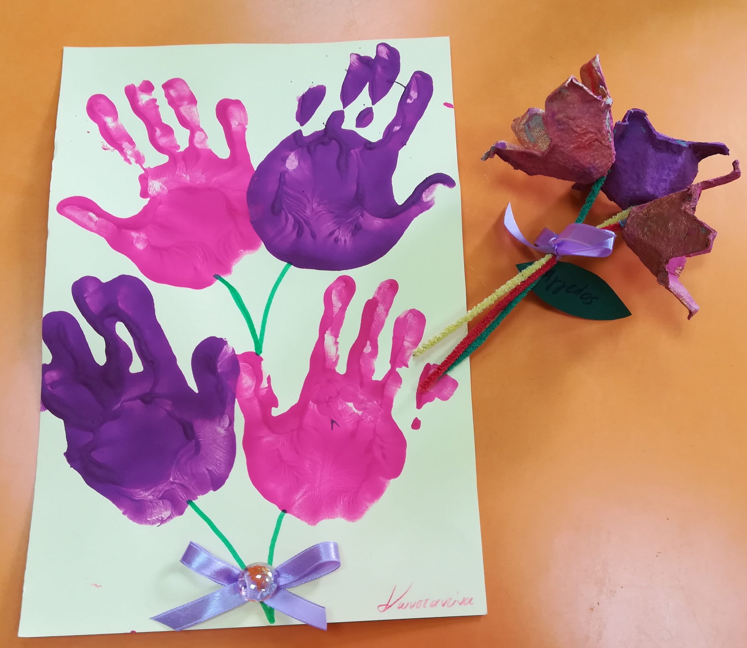 Με ιδιαίτερη προσοχή και αγάπη οι μικροί μαθητές του Νηπιαγωγείου και του Β’ Παιδικού Σταθμού δημιούργησαν το δώρο που θα προσφέρουν στην μαμά τους, εκφράζοντας τα παιδικά τους συναισθήματα.