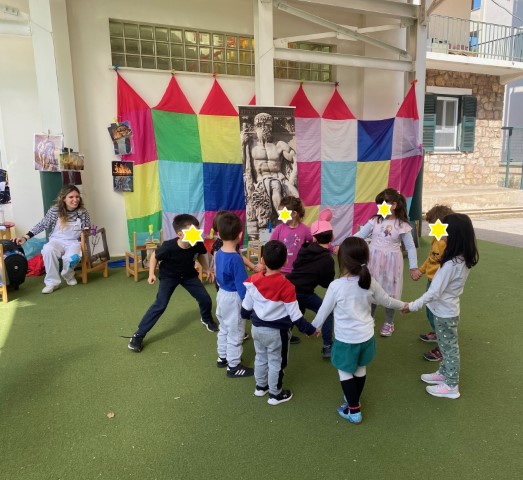 Τα παιδιά αναλαμβάνοντας ρόλους, συμμετείχαν ενεργά με ενθουσιασμό και χαρά, ζώντας τους άθλους του Ηρακλή.