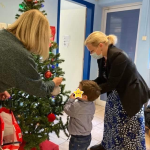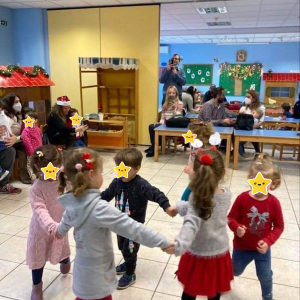 Οι γονείς με τα παιδιά τους έφεραν στολίδια και όλοι μαζί στολίσαμε το Χριστουγεννιάτικό δέντρο μας. Κάτω από το δέντρο τραγουδήσαμε τα κάλαντα και χορέψαμε χριστουγεννιάτικα τραγούδια. Τέλος, όλοι μαζί πήραμε το πρωινό μας, που περιλάμβανε τις λιχουδιές που έφεραν οι γονείς.