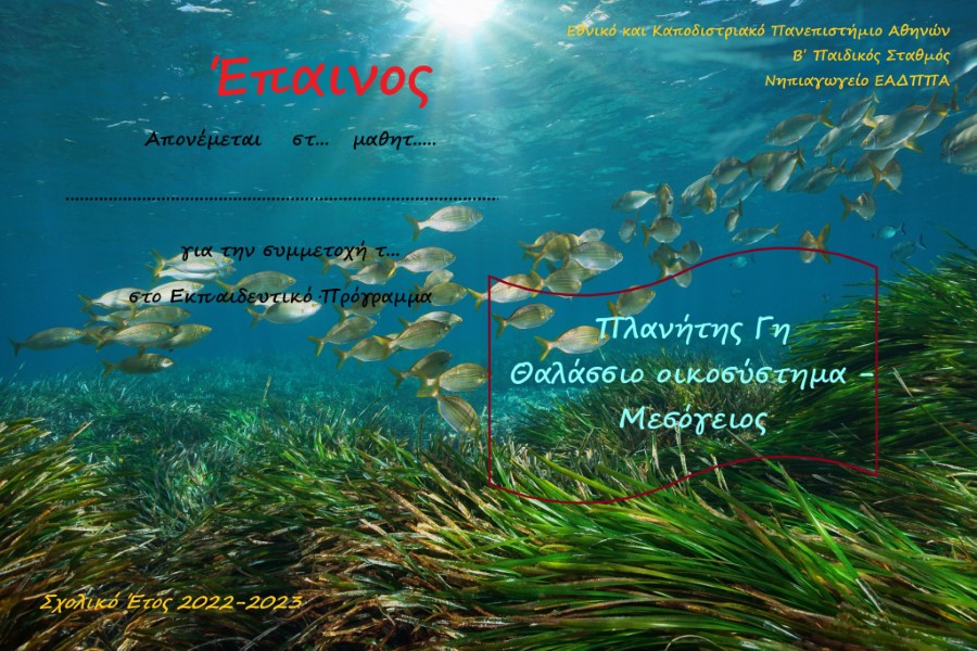 « Πλανήτης Γη – Θαλάσσιο Οικοσύστημα – Μεσόγειος »