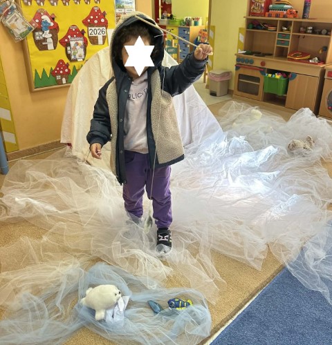 Γίναμε Εσκιμώοι εμείς, ψάρια ψαρέψαμε ευθύς, στους φίλους μας τους πιγκουίνους τα δώσαμε να τα φάνε που κρυώνουν και πολύ πεινάνε!