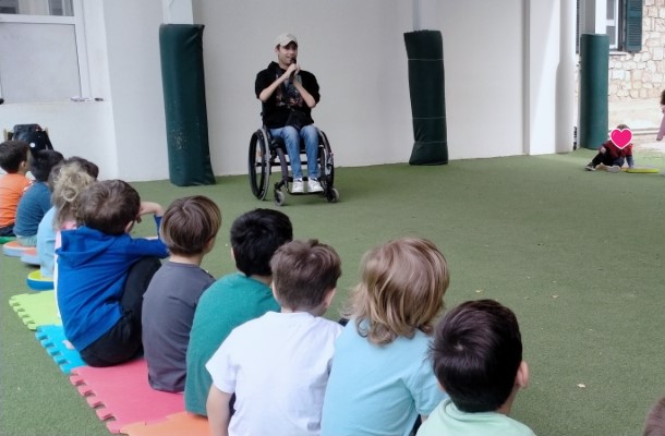 Γνωρίσαμε τους Παραολυμπιακούς Αγώνες που γίνονται μετά τους θερινούς και συναντήσαμε από κοντά Αθλητή με αναπηρία που επισκέφτηκε το σχολείο μας. Μας έλυσε όλες τις απορίες μας και παίξαμε μαζί του.