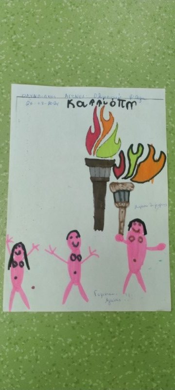 Ζωγραφίσαμε τα Αρχαία Αθλήματα, τον κότινο, την Ολυμπιακή Φλόγα και εξηγήσαμε την Ολυμπιακή Εκεχειρία.
