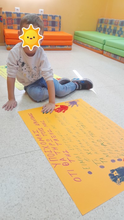 Δώσαμε υπόσχεση ότι θα τηρούμε τους κανόνες  και «υπογράψαμε» όλοι το συμβόλαιο , με το αποτύπωμα της παλάμης μας !