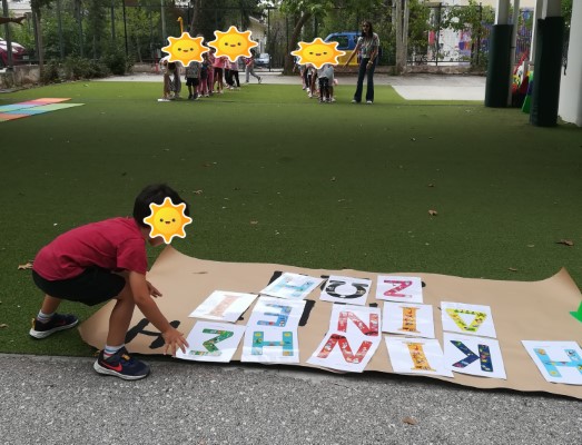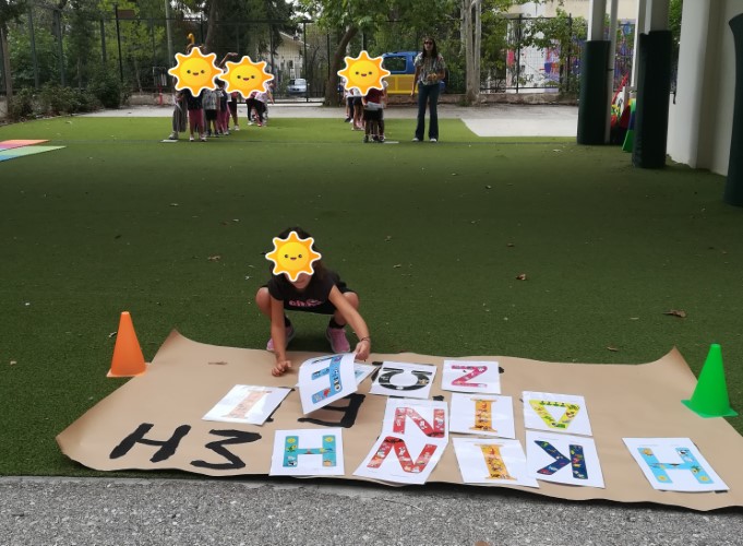 • Ζωγραφίζουμε τα γράμματα που θα σχηματίσουν το σύνθημα μας,  «Η Κίνηση δίνει Ζωή».